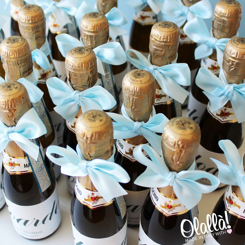 Mini bottigliette di prosecco brut o spumante mignon di qualità italiana d’eccellenza, personalizzate come desideri. Dai il via alla festa e brinda insieme ai tuoi amici e ai tuoi cari, con queste mini bottigliette sarà un tripudio di allegria!