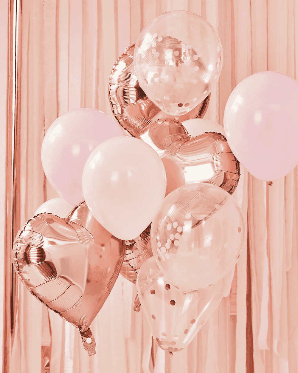 - Varietà: Il set include palloncini in lattice rosa, palloncini con confetti e cuori in foil oro.