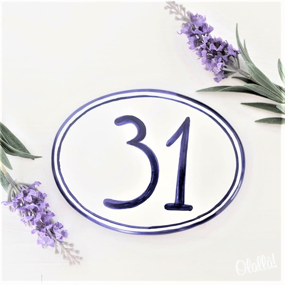 Semplice ed elegante civico personalizzabile dipinto a mano con un fine decoro sui bordi. Questo civico è di elevatissima qualità: garantiamo una resistenza di almeno 20 anni!