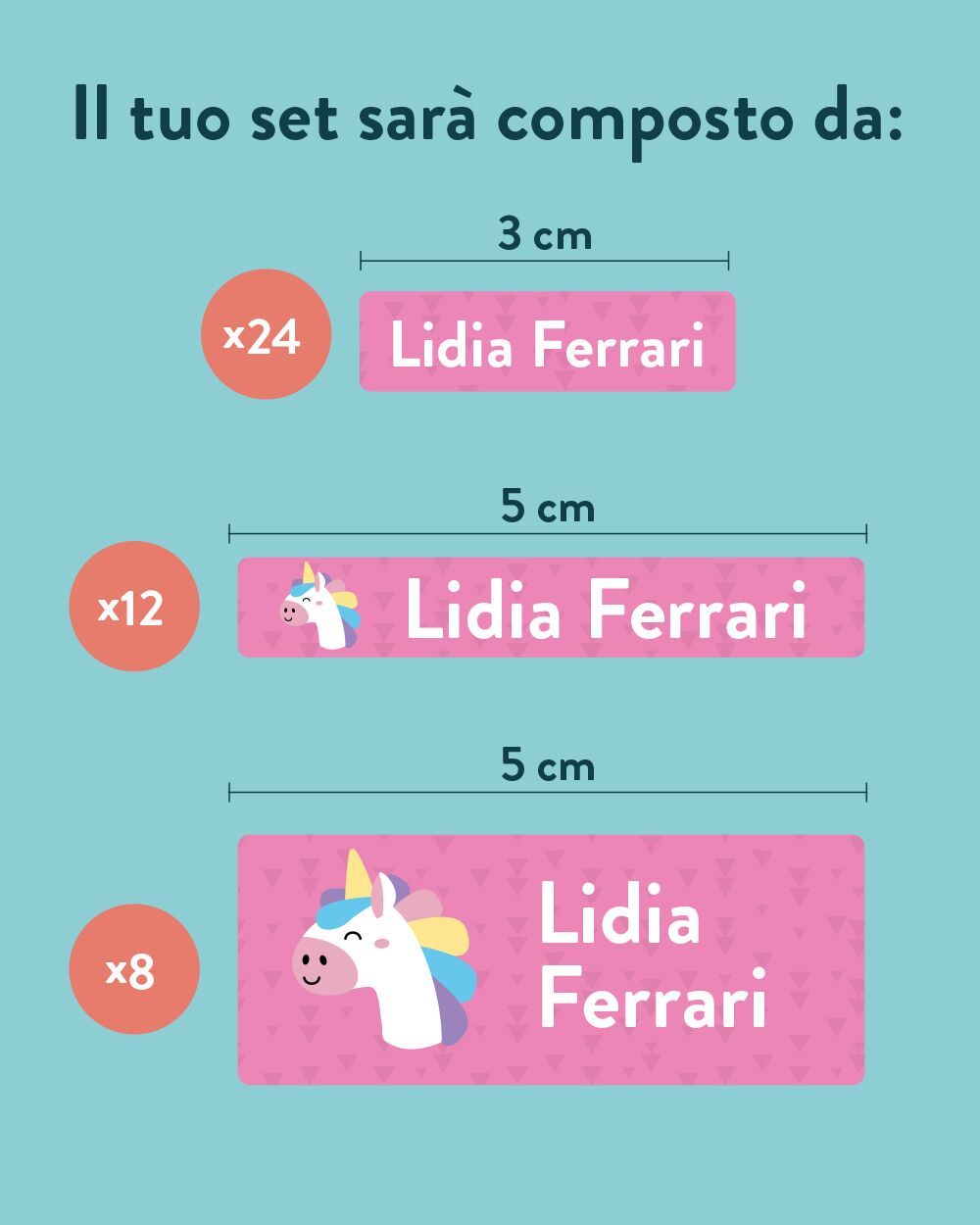2. Completamente Personalizzabile: ogni etichetta può essere personalizzata al 100%. Potrai scegliere il nome, il colore, il simbolo e il design, creando etichette uniche che riflettono i gusti e la personalità del tuo bambino.