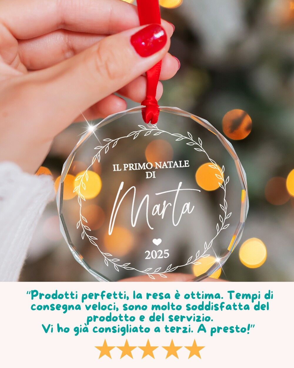Con la sua luce brillante e la sua eleganza senza tempo, questa decorazione natalizia trasmette emozione e calore, diventando un ricordo da appendere ogni anno con gioia.
