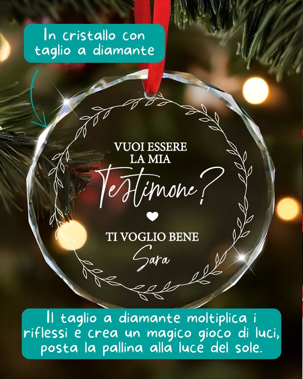 Regalarla è un modo dolce e originale per chiedere: “Vuoi essere la mia testimone di nozze?”, con la magia e la luce del Natale a fare da cornice.