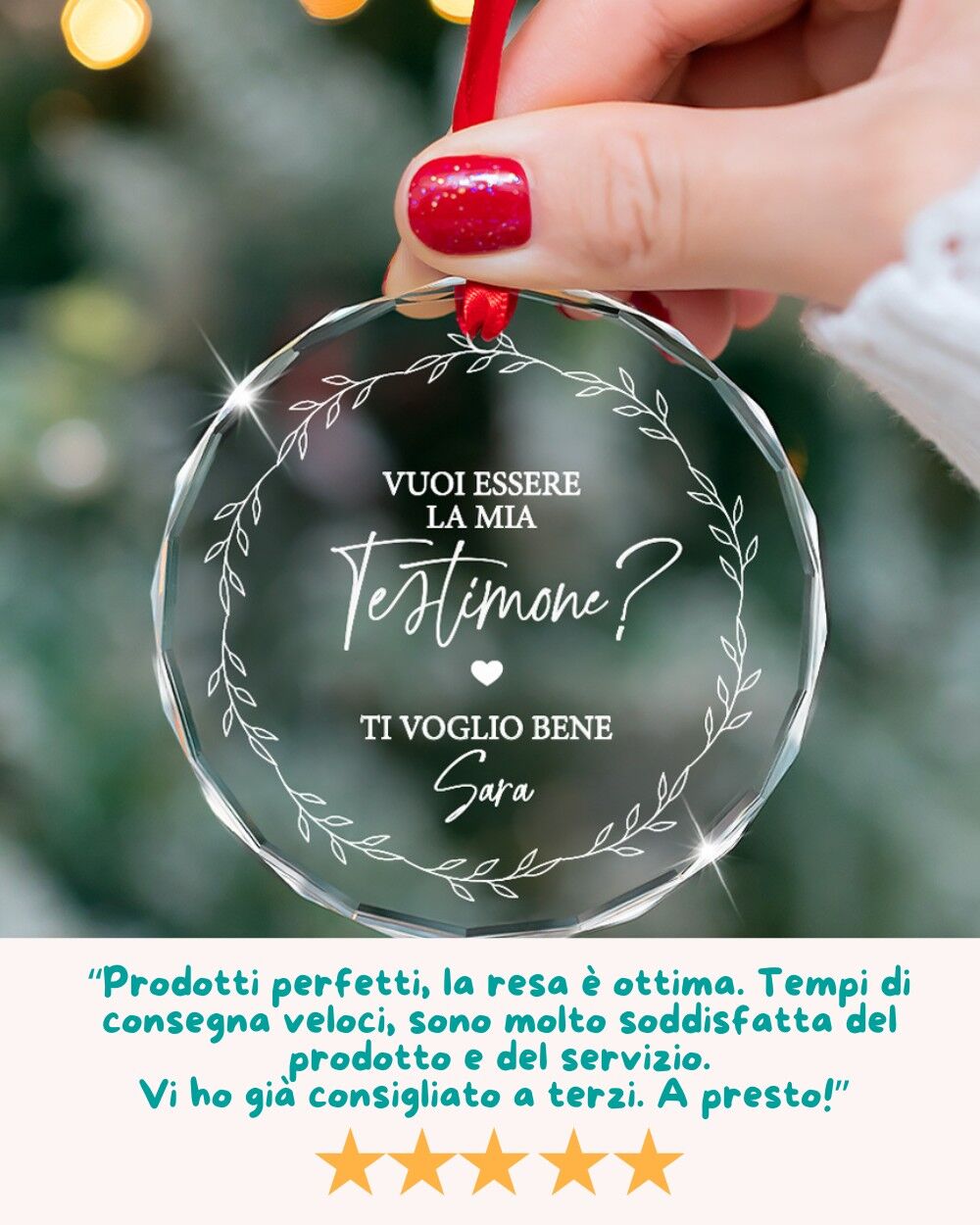 - Regalo di Natale per la testimone di nozze, per sorprenderla con un messaggio emozionante.