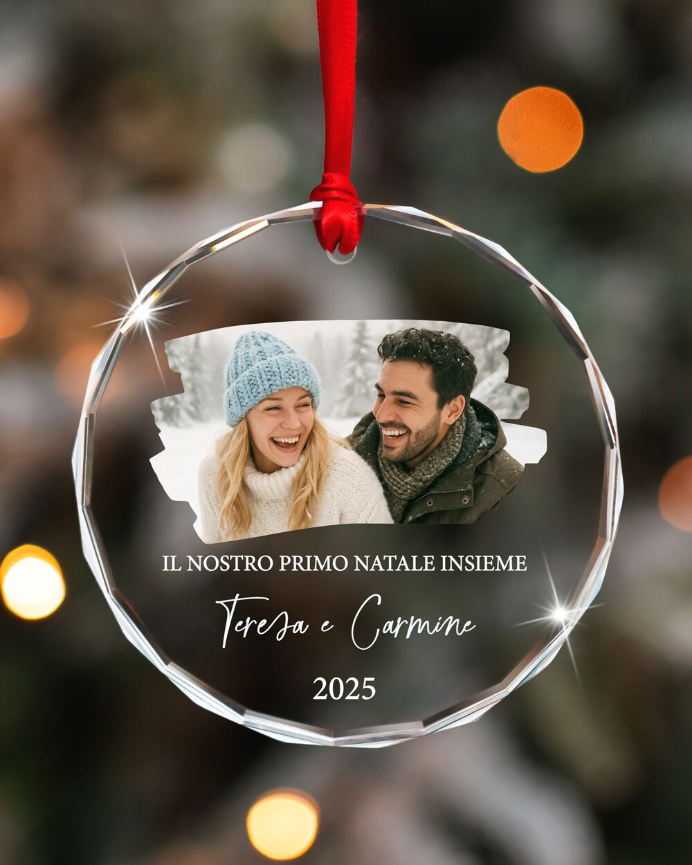Ogni volta che la vedrete brillare tra le luci dell’albero, questa decorazione natalizia vi riporterà a quel sorriso, quello sguardo, quel giorno che volete ricordare per sempre.