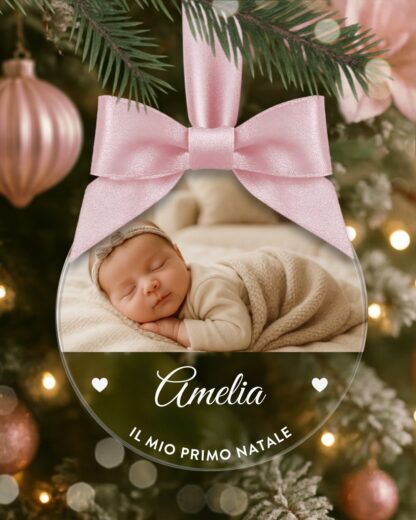 Ogni volta che questa pallina personalizzata verrà appesa all’albero, farà riaffiorare emozioni, sorrisi e la gioia di un momento irripetibile.