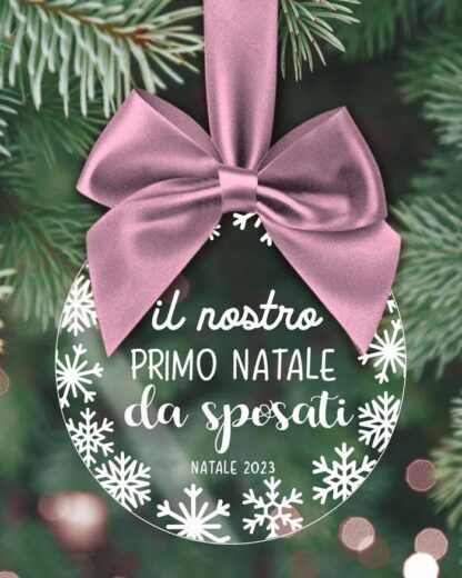 Deliziosa Pallina in Plexiglass con Frase “Il Nostro Primo Natale da Sposati”. Un modo davvero originale per festeggiare il primo Natale insieme coccolati dalla calda e frizzante atmosfera natalizia!