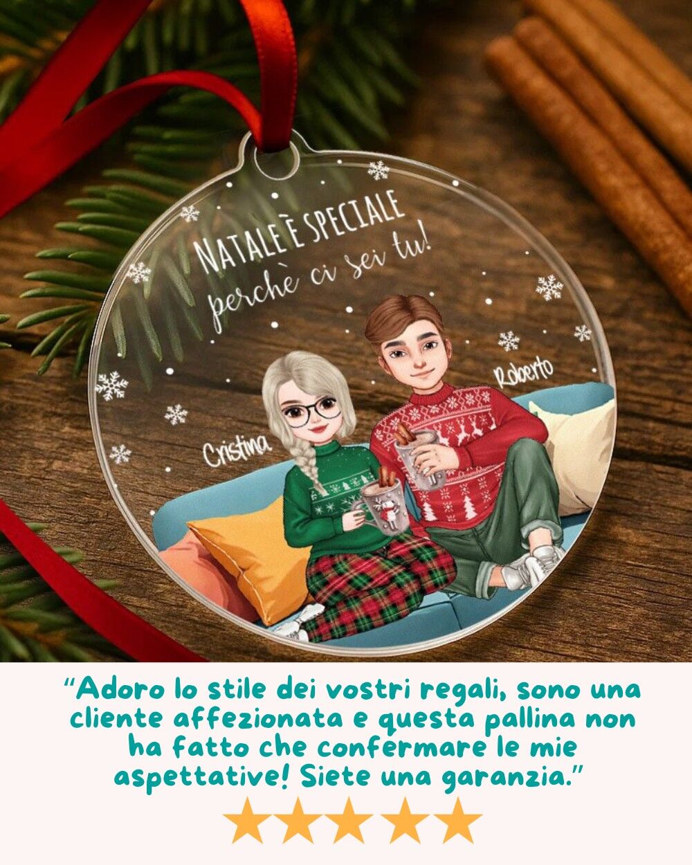 Tra le palline personalizzate più amate, questa è quella che unisce emozione, ironia e calore: un piccolo gesto capace di rendere ancora più magico il Natale.