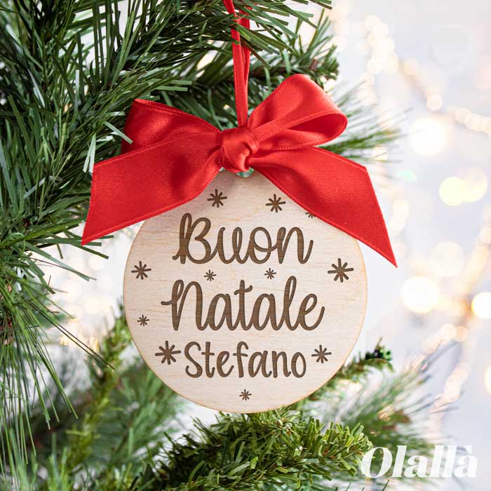 Splendida pallina da appendere all’albero con il tuo messaggio e la tua dedica. Un dolce regalo per celebrare e ricordare il Natale in modo unico e speciale.