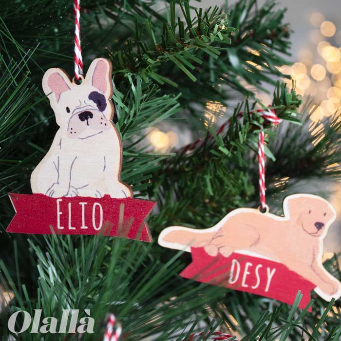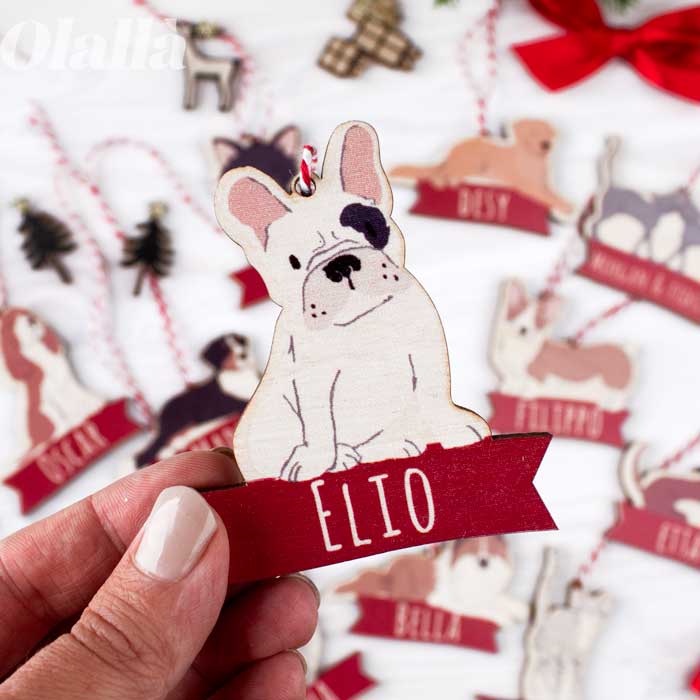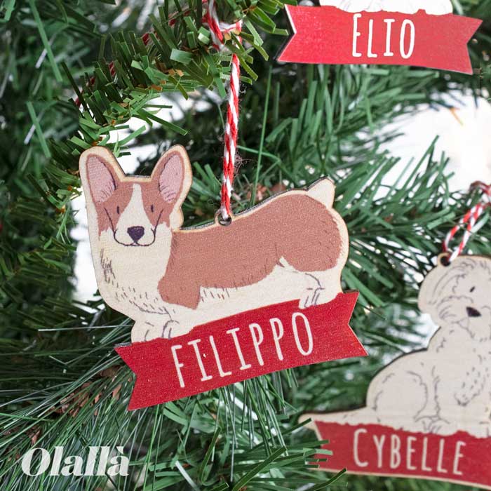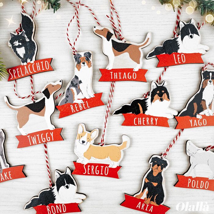 Deliziose palline da appendere all’albero di Natale a forma del tuo cagnolino preferito personalizzata con il suo nome su banner rosso. Seleziona la razza del tuo cane tra le tantissime già disponibili o crea una pallina su misura per il tuo animale da compagnia preferito con un piccolo sovrapprezzo!