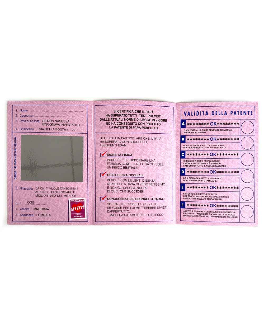 Ordina ora la Patente del Papà e celebra con stile e ironia il ruolo speciale di tuo padre nella tua vita.