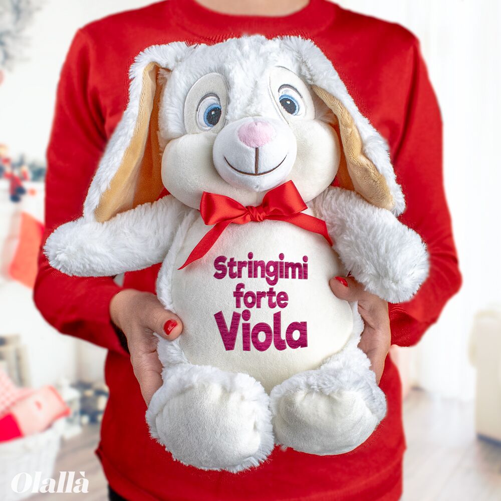 Dolcissimo peluche natalizio con scritto “Buon Natale” sul pancino e personalizzata col ricamo del nome del tuo piccolino nel colore che preferisci. Il regalo di Natale perfetto per far felici i tuoi cuccioli !