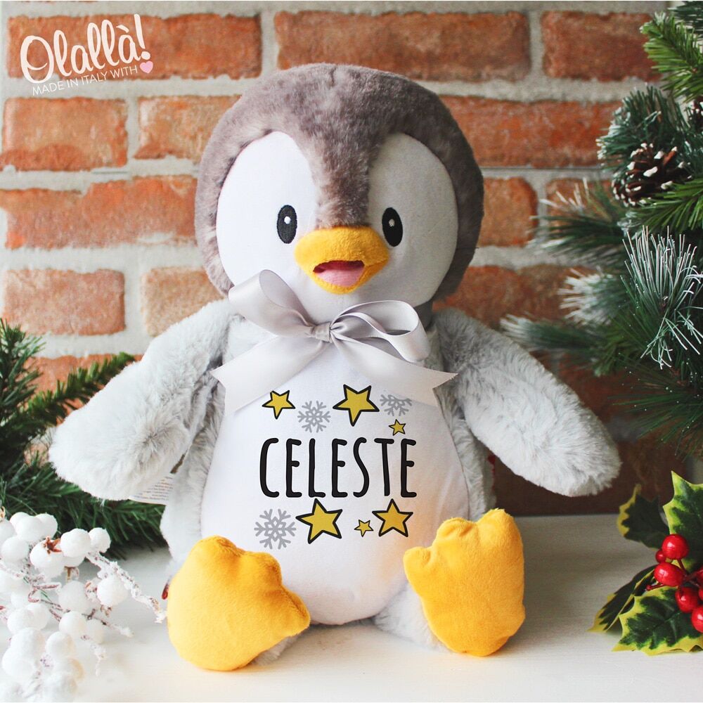 Peluche Natalizio Personalizzabile con Nome, Stelle e Fiocchi di Neve – Idea Regalo Natale