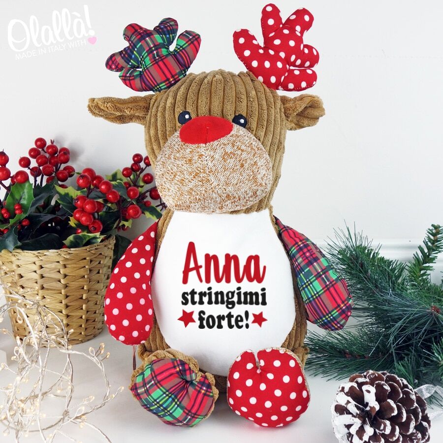 Una dolcissima renna peluche natalizia personalizzata col nome del bambino. Il regalo perfetto per questo Natale!