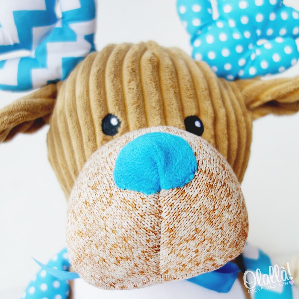 Una dolcissima renna peluche personalizzata col nome del bambino. Il regalo perfetto per una nascita, un compleanno o un evento speciale. Stupite il bambino e i genitori con un dono personalizzato apposta per il loro piccolo.