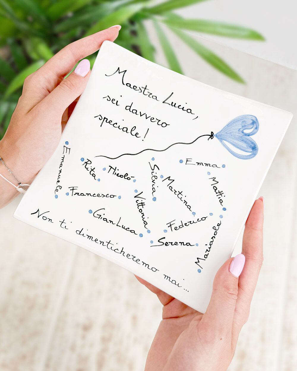 - Personalizzazione Profonda: Ogni piattino può essere personalizzato con dediche, nomi degli alunni o semplici messaggi che rendono ogni pezzo unico e irripetibile.