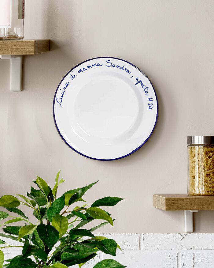 Grazioso piatto in ceramica bianco con bordo blu, cuoricino rosso e scritta personalizzabile nello stesso colore. Un pensiero perfetto per essere regalato a tua mamma in qualunque occasione, dal compleanno, al Natale, alla festa della mamma. Poche parole che rappresentano tutto l’amore tra madre e figli!