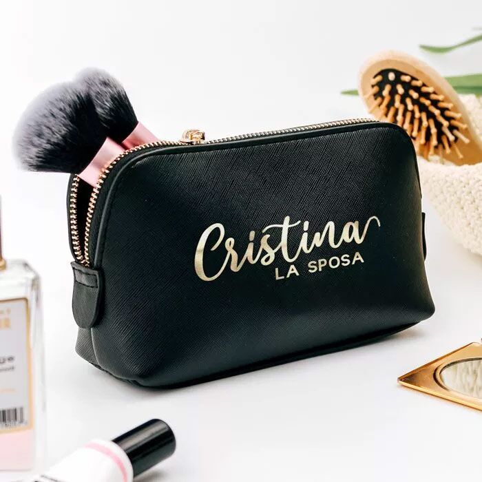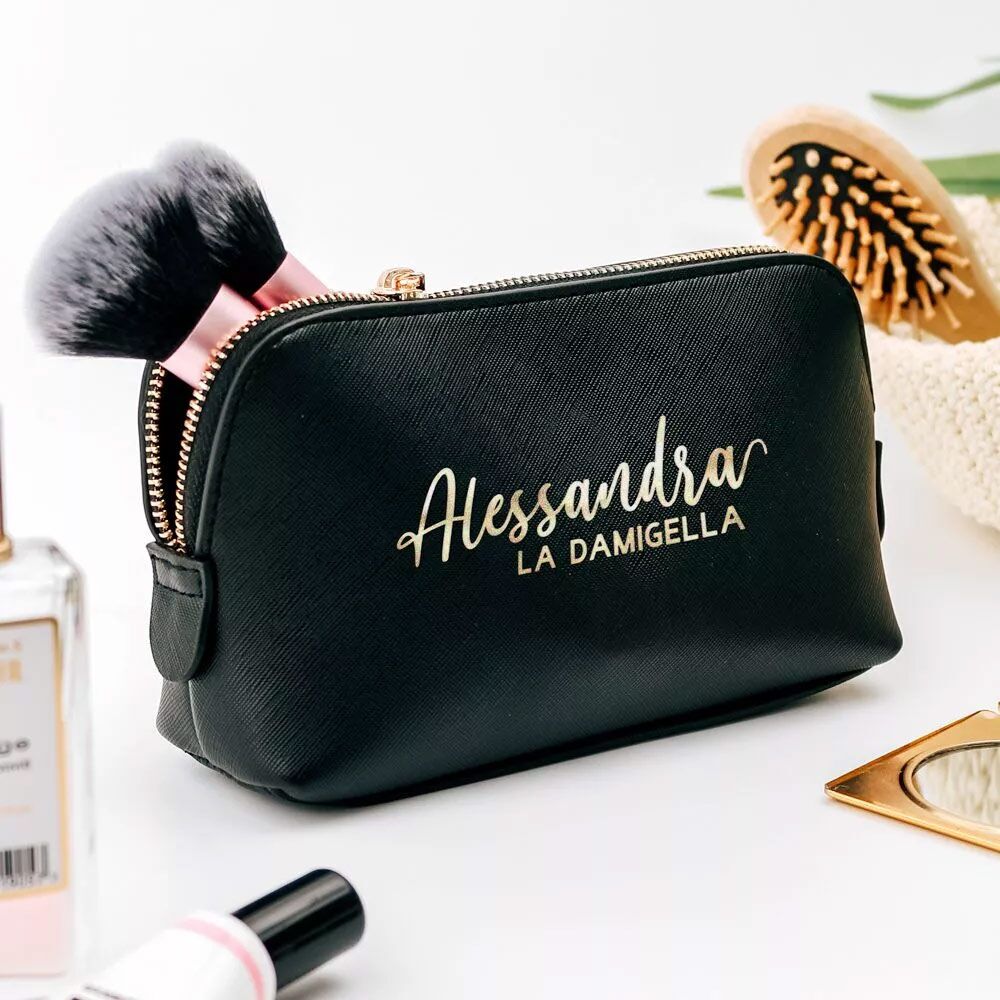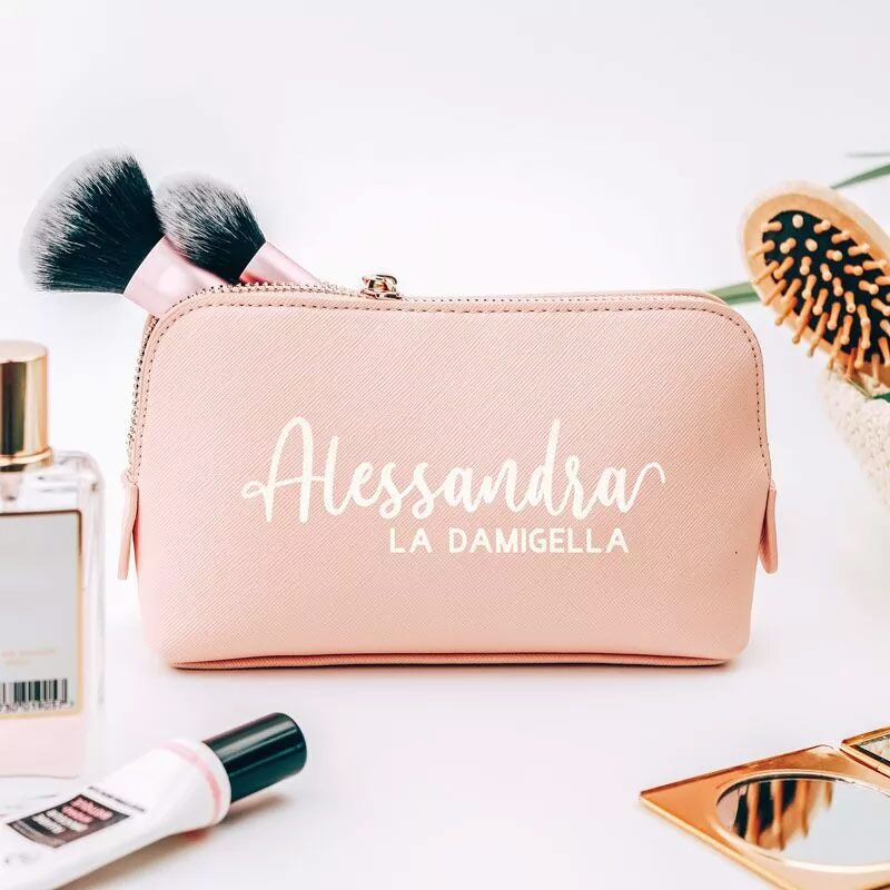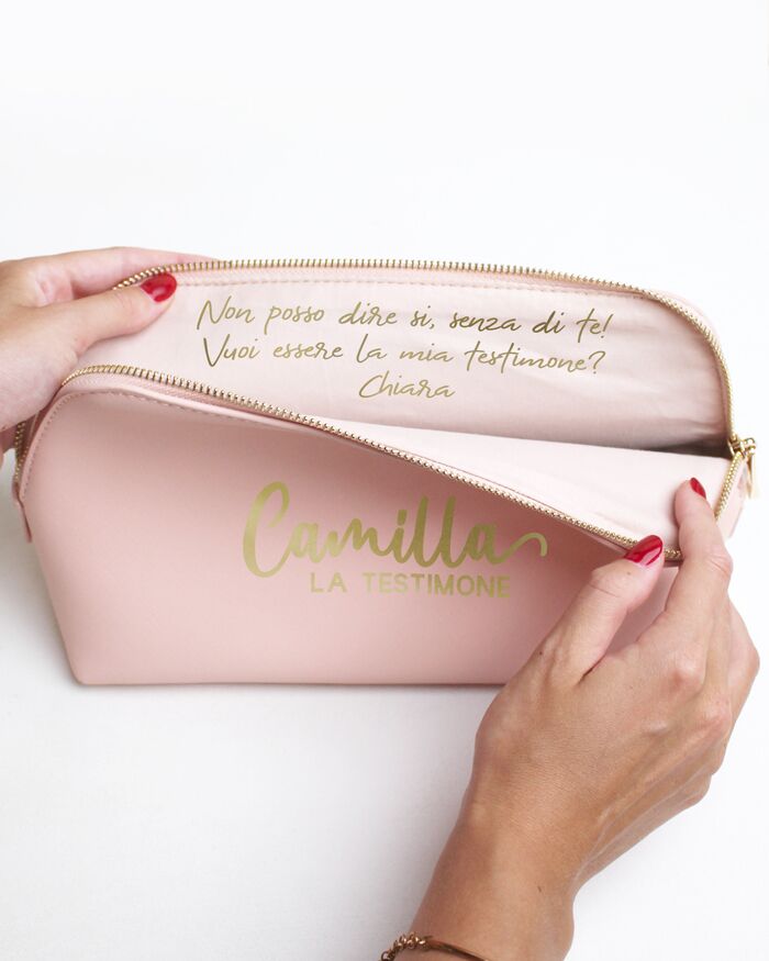 Questa pochette beauty case in ecopelle nasce esattamente con quest’idea: essere il regalo che la sposa o le sue damigelle apriranno tra dieci anni e sorrideranno ancora. Con il nome stampato sopra — in oro, in bianco, in rosso, nel colore che preferisci — diventa un oggetto impossibile da confondere con qualsiasi altro. Perché qualunque cosa ci metta dentro, sarà sempre sua.