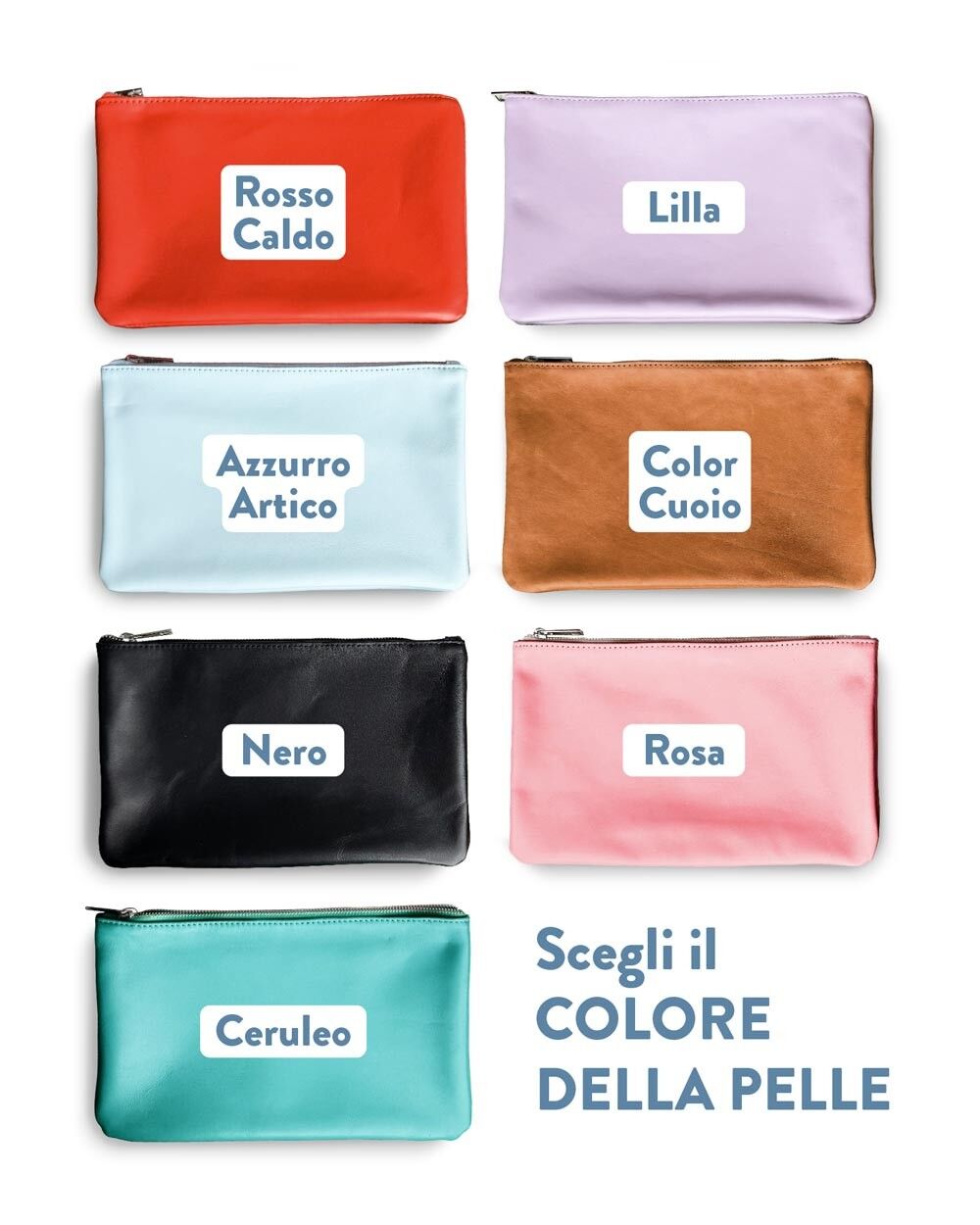 Pochette in Vera Pelle Made in Italy, Piccola o Grande, Colore a Scelta