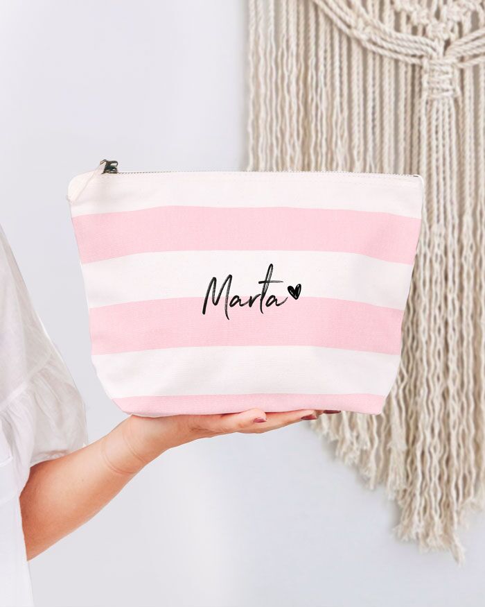 Pochette Personalizzata in Tela a Righe Con Nome e Cuoricino – Idea Regalo Donna
