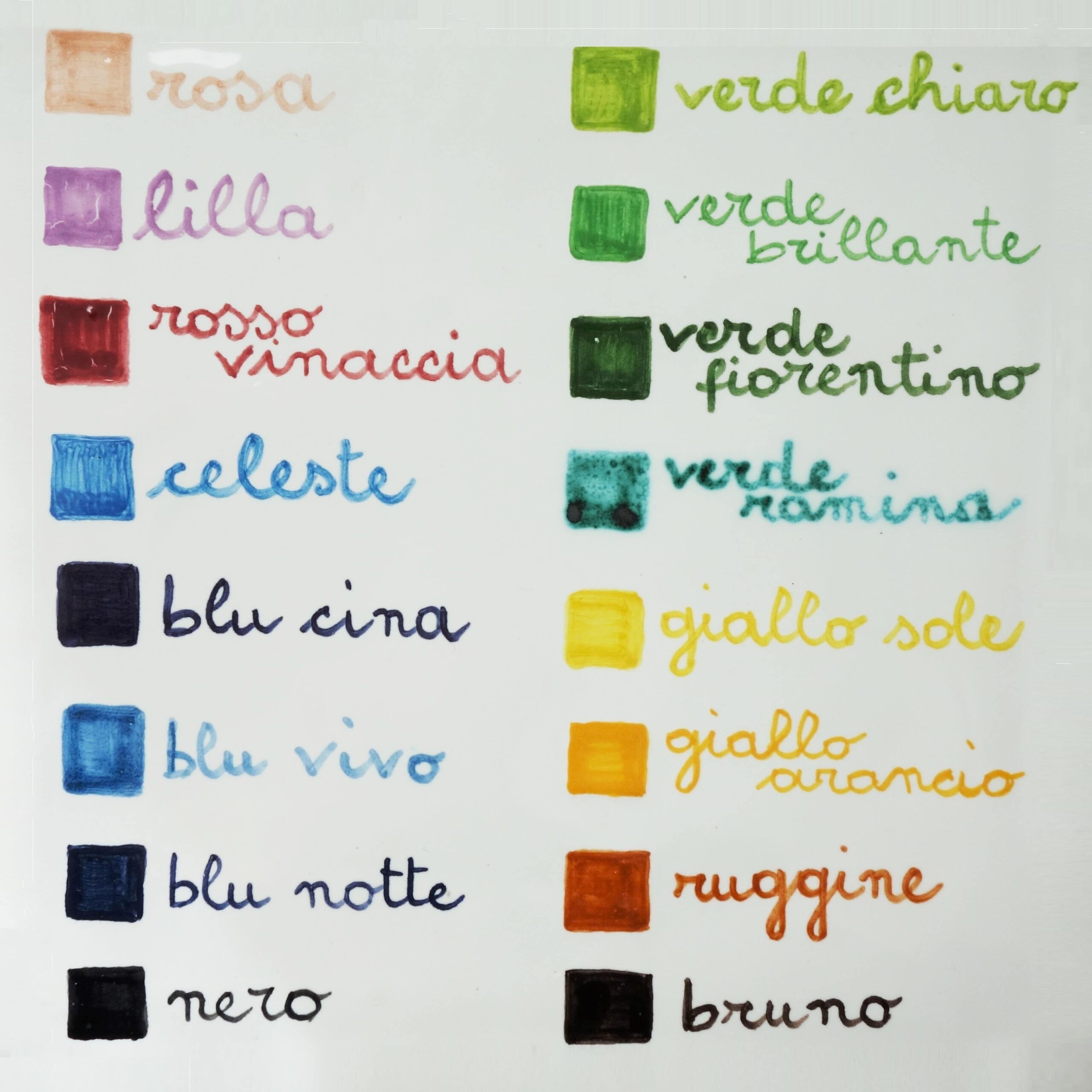 Smalti e colori apiombici per stoviglie. Lavabile in lavastoviglie a temperatura moderata.