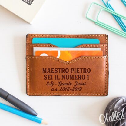 Porta Carte in Cuoio Personalizzabile con Dedica – Idea Regalo Maestro