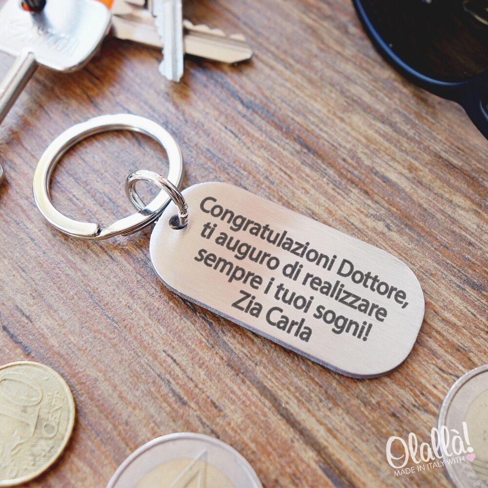 Il portachiavi d’acciaio inox può essere confezionato all’interno di una confezione regalo accompagnata dal vostro messaggio d’auguri personalizzato.