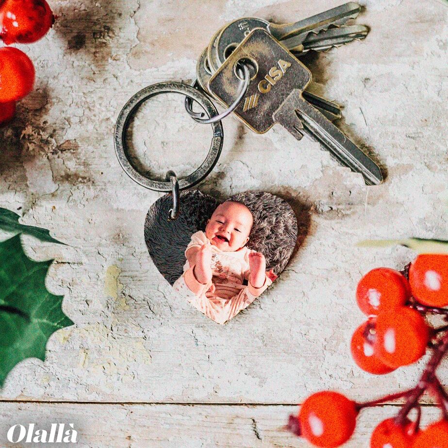 Dolcissimo portachiavi a forma di cuore personalizzato con la foto che desideri, per esempio quella dei tuoi bimbi. Un tenero regalo da fare per qualsiasi occasione speciale alla mamma, al papà o ai nonni! Ordinalo come regalo di Natale, l’emozione è assicurata!