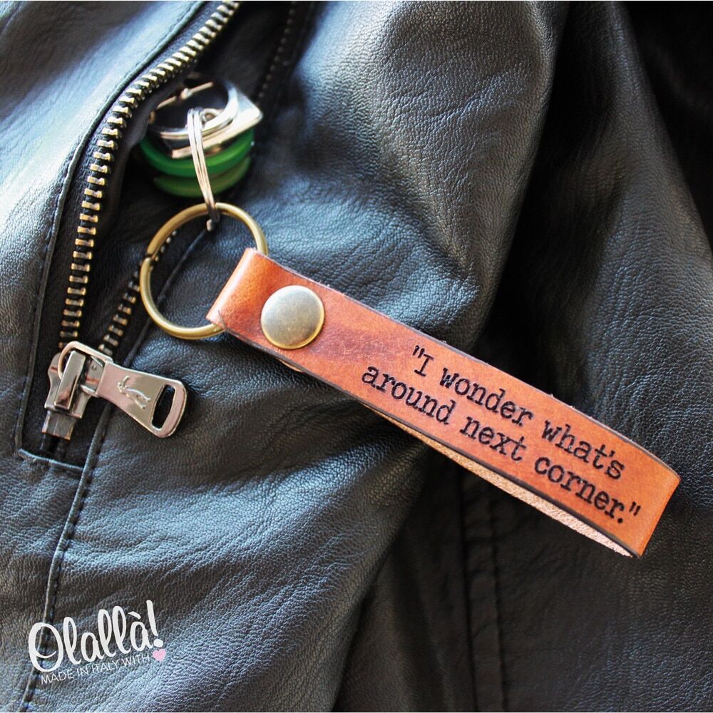 Questo portachiavi in cuoio diventerà un esclusivo regalo per tuo marito, un amico o un parente che apprezzerà di ricevere un dono utile oltre che bello e unico, realizzato su misura per lui. Pratico e di stile, questo portachiavi è disegnato per poter essere portato alla cintura, si mette e si toglie facilmente grazie al pratico bottone automatico e ha un pratico anello dove appendere le chiavi. Un accessorio fondamentale per tenere ordinate le chiavi e per personalizzare il proprio stile.