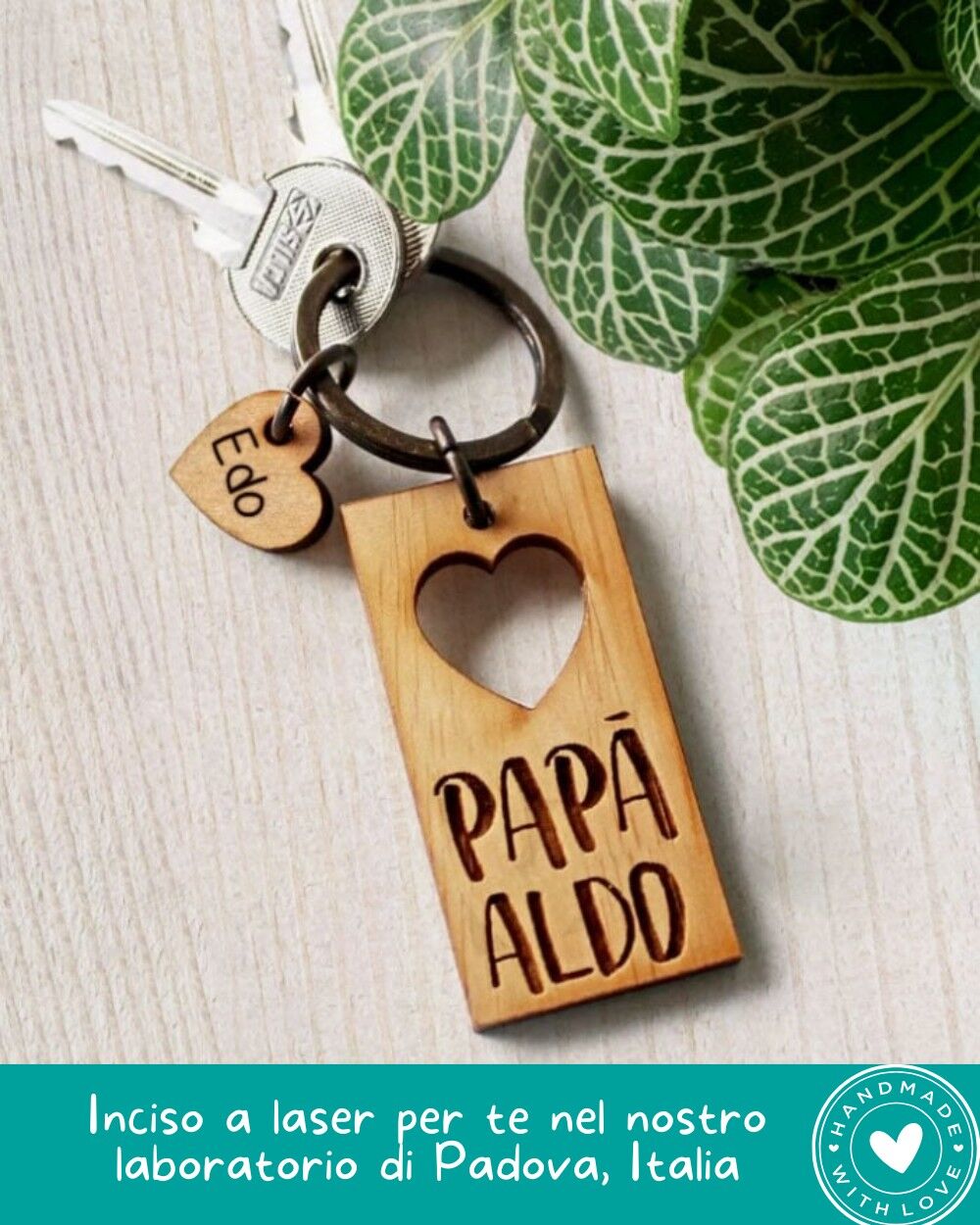 - PER ESSERE SEMPRE CON IL TUO PAPÀ: un portachiavi inciso con il tuo nome su un tenero cuoricino, per essere sempre nei pensieri del tuo papà!