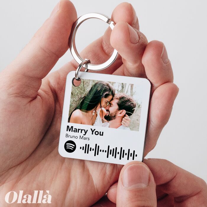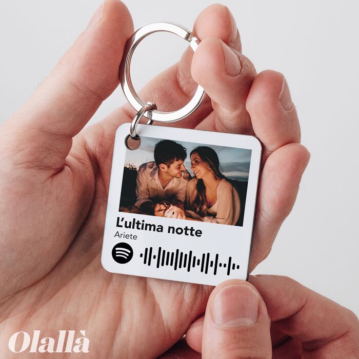 Portachiavi Quadrato Personalizzato con Foto e Codice Canzone Spotify – Idea Regalo Amore