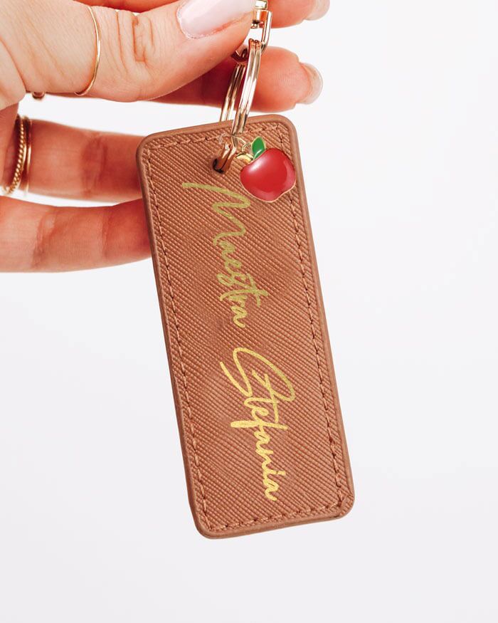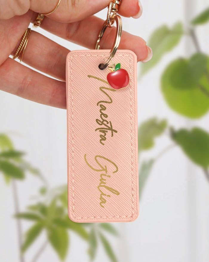 Portachiavi Rettangolare in Ecopelle “Maestra” Personalizzato con Nome – Idea Regalo per Maestre e Insegnanti, Fine Anno Scolastico
