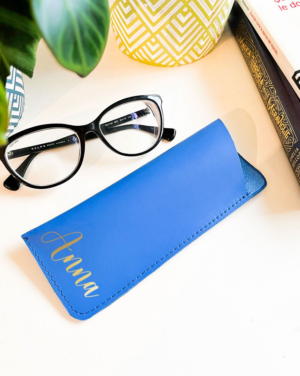 Portaocchiali in Vera Pelle Personalizzato con Nome Corsivo – Un Regalo Elegante per la Tua Amica