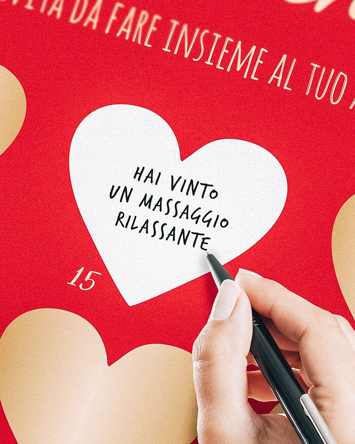 Aggiungi un tocco di brio al tuo prossimo dicembre con questo carinissimo calendario dell’avvento personalizzabile. Scrivi un’attività per ogni giorno dall’1 al 24 dicembre e stupisci il tuo ragazzo o la tua ragazza con effetti speciali! Ogni giorno lui o lei potrà grattare un cuoricino e vedere che attività hai pensato da fare insieme. Sarà un modo alternativo e originale per passare del tempo insieme in attesa del Natale.
