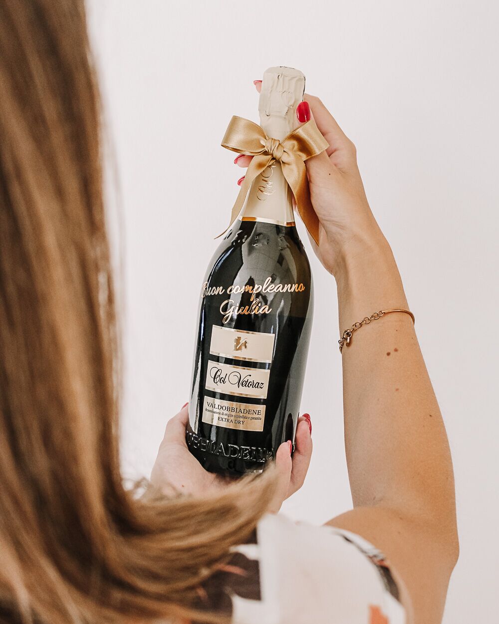 Stupisci tuo marito oppure il tuo compagno con questa stupenda bottiglia di Prosecco Valdobbiadene DOCG Col Vetoraz, personalizzata con scritte dorate che recano il suo nome. Un vino importante per celebrare un evento altrettanto speciale: con questo regalo farai un figurone assicurato!