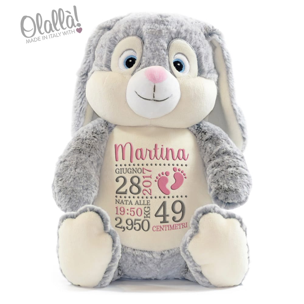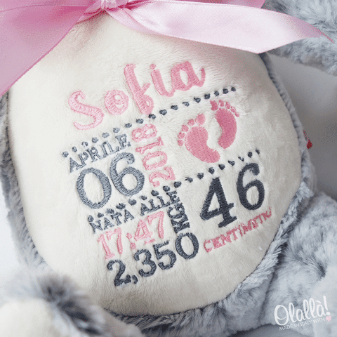Morbidissimo peluche unicorno personalizzato con il nome del neonato e tutti i dati della nascita come peso, altezza, data e orario di nascita. Realizzate un regalo davvero originale per un bambino o bambina davvero speciale! Stupite i genitori e lasciate che il piccolo si ricordi sempre di voi ogni volta che stringerà a sé questo meraviglioso pupazzo personalizzato.