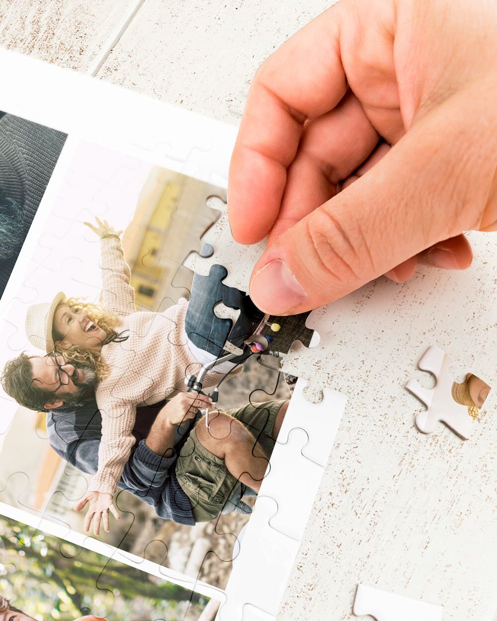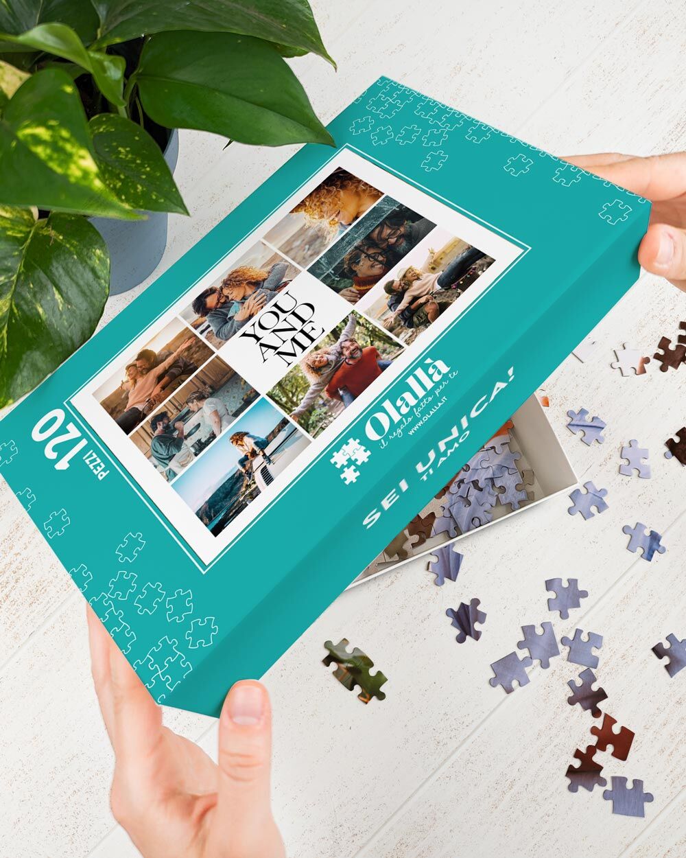 Puzzle personalizzato con foto, dedica e scatola coordinata disponibile in sei diversi formati.