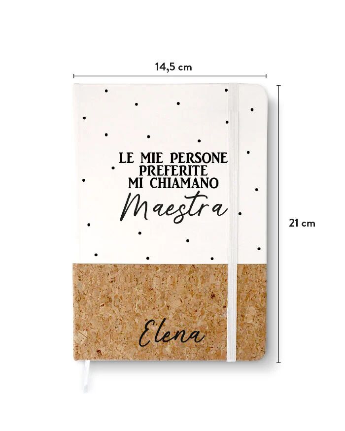L’insegnante dei tuoi bimbi merita un ringraziamento per il prezioso lavoro che svolge ogni giorno con i tuoi piccoli. E quale miglior modo di farlo se non affidarsi a un regalo personalizzato che possa utilizzare tutti i giorni? Questo quaderno è perfetto perché le permetterà di districarsi tra tutti gli impegni quotidiani a scuola! Con questa agenda avrà un valido alleato che la aiuterà a non dimenticarsi i compiti, gli appunti, e la lezione da proporre in classe!