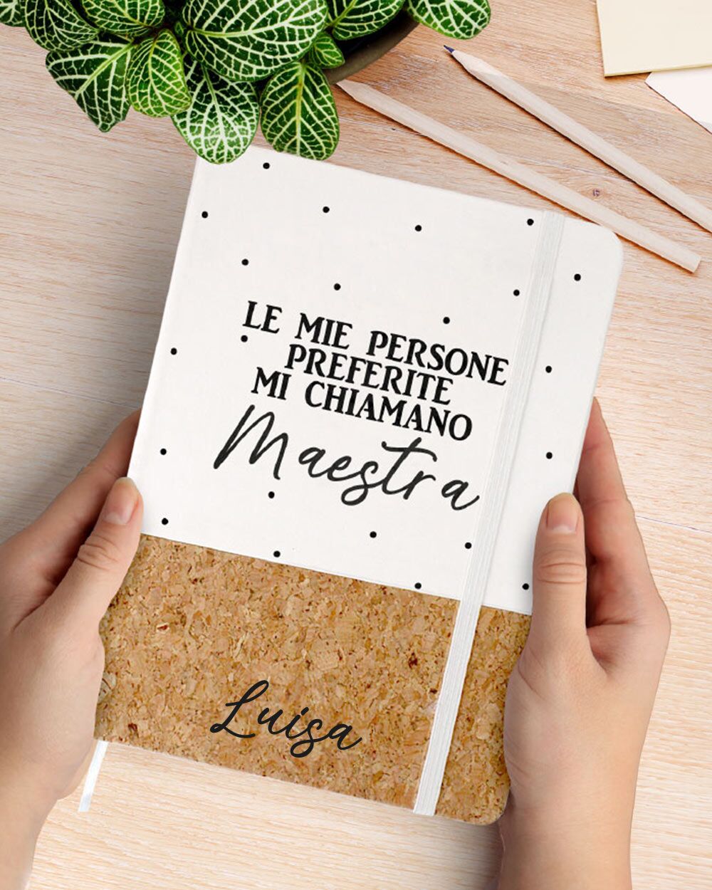- UN QUADERNO PERSONALIZZABILE con il nome della maestra, che l’insegnante potrà utilizzare per annotare appunti e impegni quotidiani.