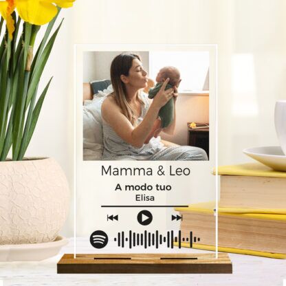 Originale Quadretto o Placca in Plexiglass Personalizzabile con la vostra foto, i nomi o una brevissima dedica e il codice Spotify della vostra canzone del cuore. Quale occasione migliore della Festa della Mamma per dire alla tua mamma quanto le vuoi bene e quanto è importante per te?