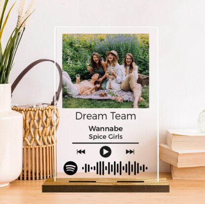 Bellissima Targhetta in plexiglass trasparente personalizzabile con la vostra foto, i nomi e il codice Spotify della vostra canzone. Regala un’emozione unica alla tua amica e stupiscila nel giorno della sua festa.