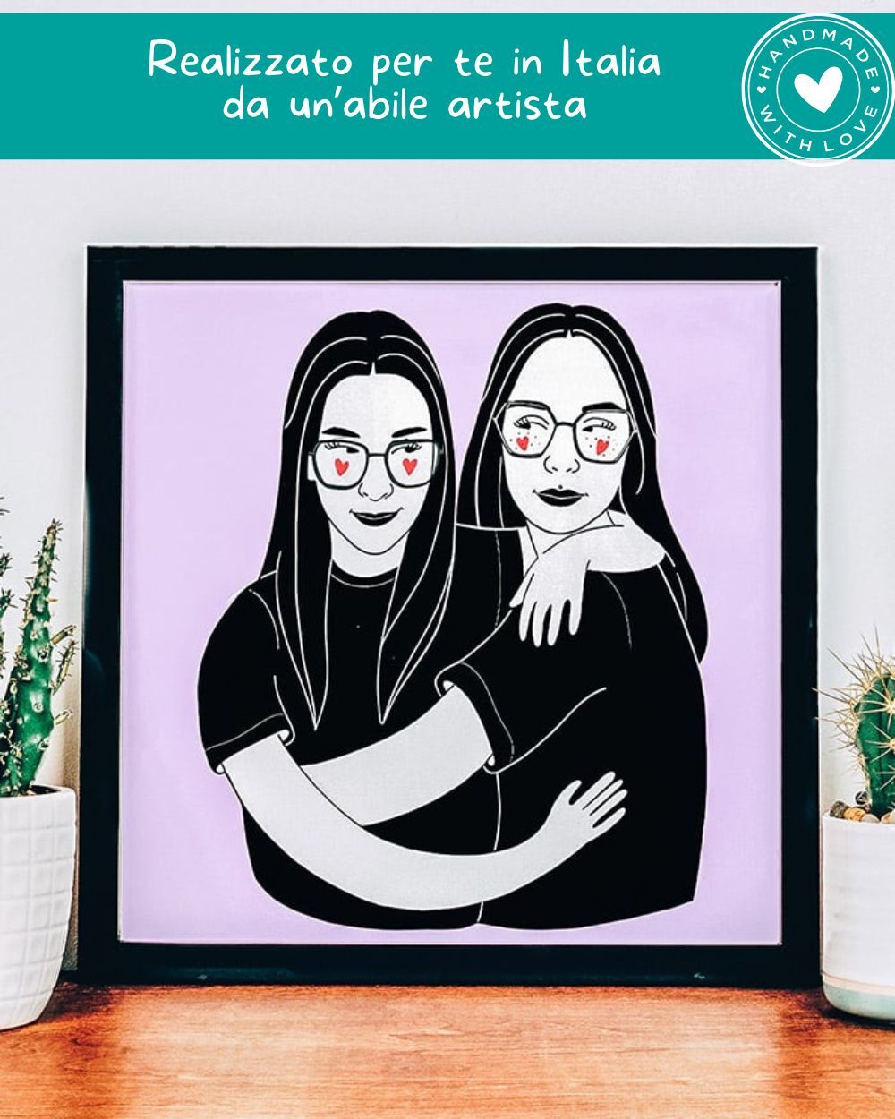 - Personalizzabile e su misura: Puoi aggiungere una dedica o una frase che rappresenti il vostro amore, rendendo il ritratto ancora più personale e speciale.
