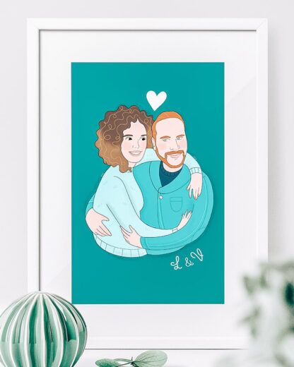 Meraviglioso ritratto di coppia rappresentata in un tenero abbraccio. Realizza un dono speciale e originale per il vostro anniversario o San Valentino. Realizzato da una talentuosa artista, è consegnato anche incorniciato in vari formati a scelta.