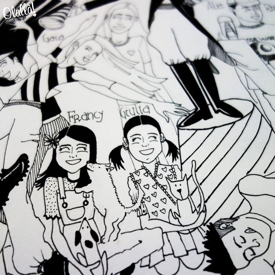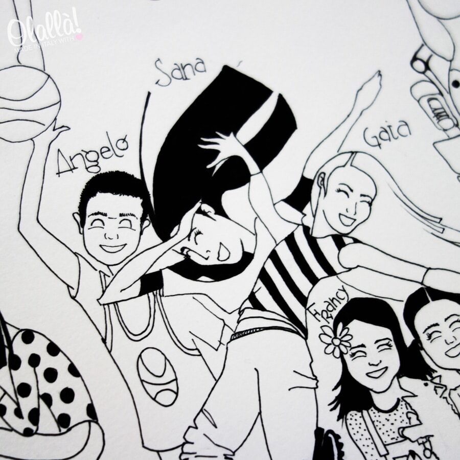 Ordinare il ritratto stile fumetto della vostra classe personalizzato a partire dalle foto dei bimbi è molto semplice. Ti basterà, una volta completato l’ordine, inviarci le foto dei bambini a servizioclienti@olalla.it spiegandoci anche le tue richieste speciali, ad esempio, ritrarre “Emma” mentre mangia un gelato, o “Carlo” che gioca con “Luca”. Se hai qualsiasi dubbio durante questo passaggio, siamo a tua completa disposizione via email, whatsapp o telefono. Chiamaci!