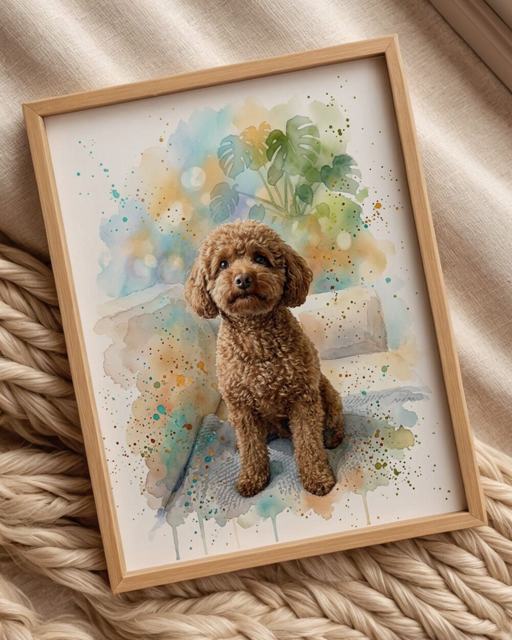 C’è uno sguardo che non si dimentica. Quello del tuo cane quando rientra a casa, quello del tuo gatto che ti fissa dalla poltrona, quello che hai catturato in una foto e che ti fa ancora sciogliere ogni volta che la rivedi. Immagina di poterlo appendere a una parete, trasformato in un’illustrazione delicata effetto acquerello: sfumature morbide, colori che si fondono, e in mezzo a tutto questo — il tuo animale, esattamente come lo conosci.