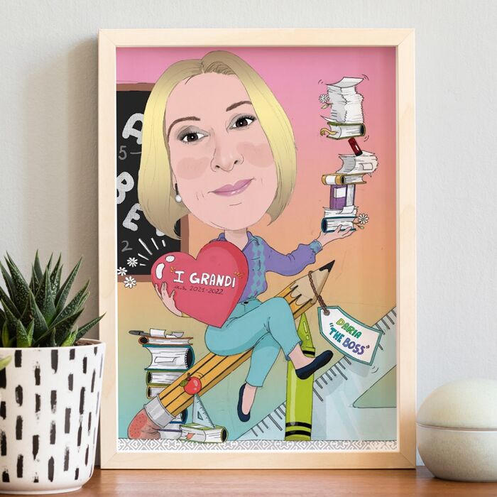 Ritratto Personalizzato Stile Caricatura per la Maestra – Idea Regalo Maestre