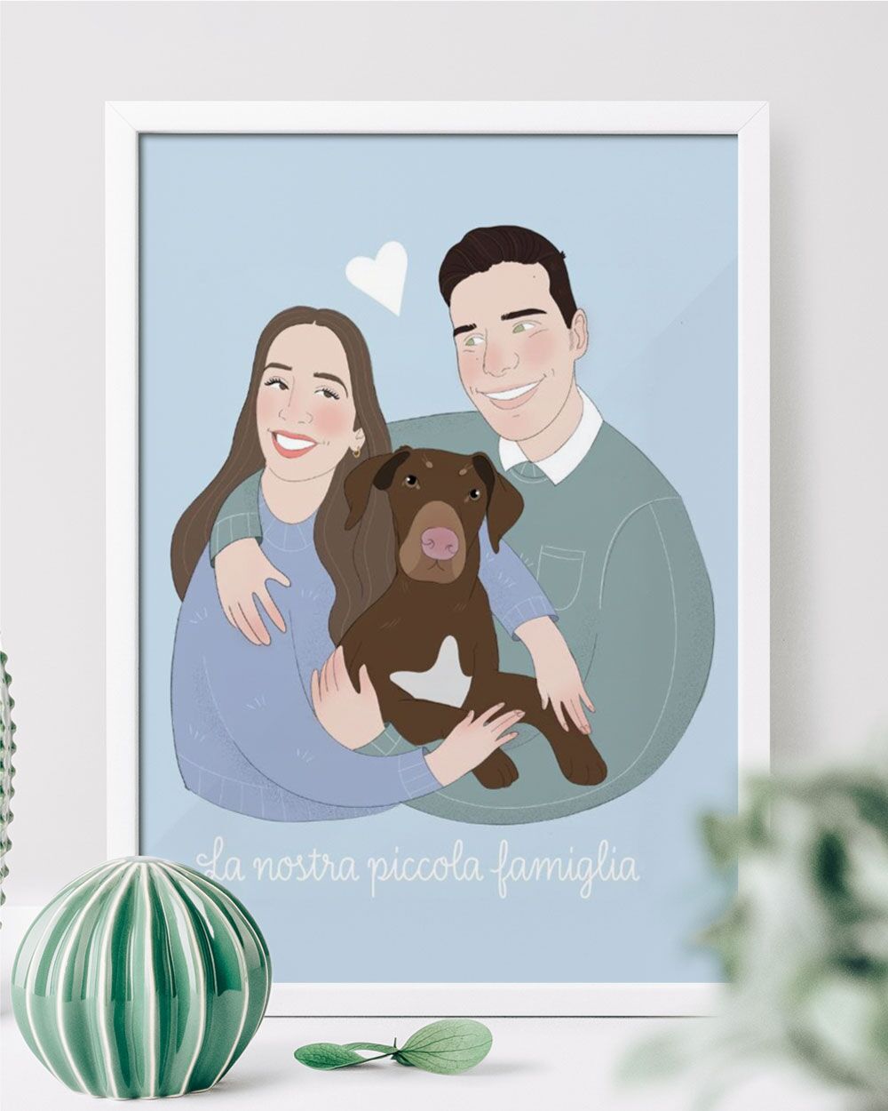 Realizza un regalo davvero unico e speciale con le nostre illustrazioni personalizzate. Una talentuosa giovane artista italiana è pronta a trasformare le tue foto in una tenera illustrazione che ha tocchi magici e poetici. Per realizzare il tuo ritratto personalizzato ti basterà acquistarlo tramite il sito specificando tutte le opzioni che ti vengono richieste e allegando delle foto dei personaggi da ritrarre (o in alternativa fornendone un’accurata descrizione sul campo dove vengono richiesti i particolari aggiuntivi). L’illustratrice saprà trasformare le foto unendo i personaggi in un delicato abbraccio. I personaggi possono avere gli occhi aperti o chiusi a scelta e di default vengono rappresentati con le gote rosse.