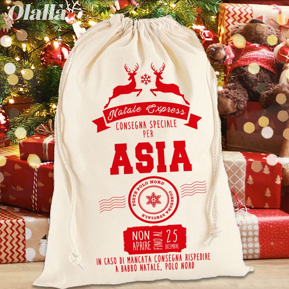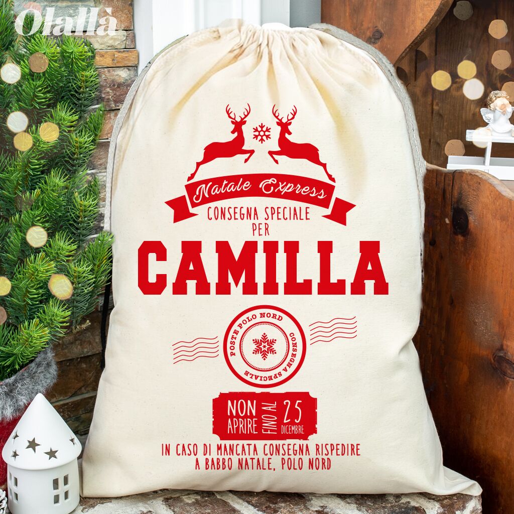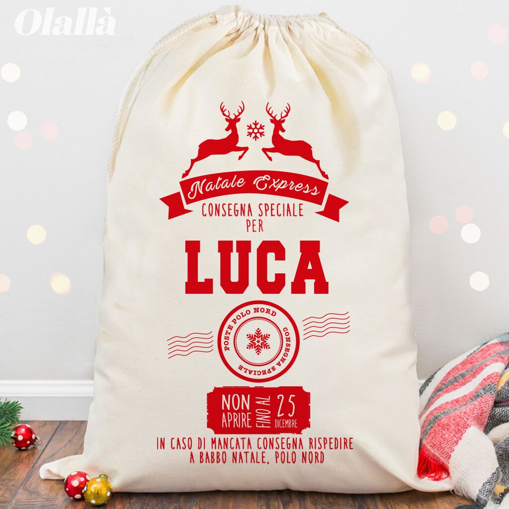 Sacca in 100 % cotone super resistente (200 g/m²) con chiusura a coulisse con cordino perfetta per contenere i tuoi doni natalizi ed arredare con stile la tua casa questo Natale.