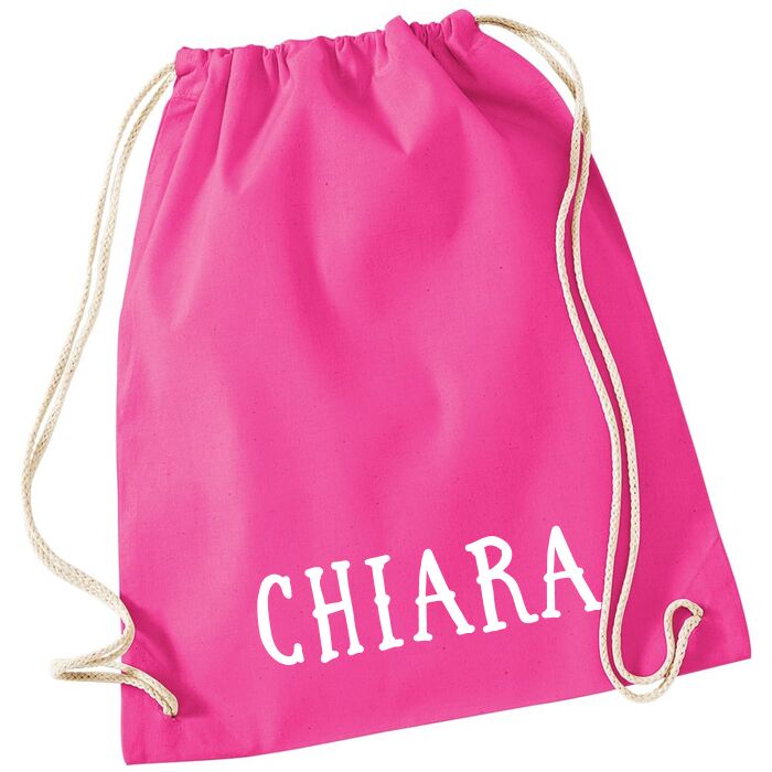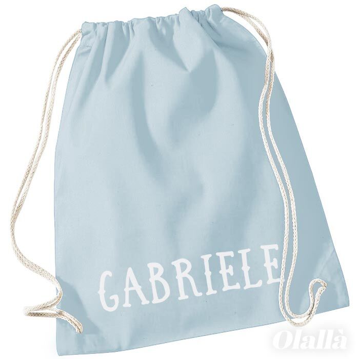 Semplice ma super utile sacca zainetto per la scuola personalizzata con il nome del bambino in un simpatico carattere stampatello. Realizza lo zainetto perfetto per la scuola materna, l’asilo nido o per lo sport, il corso di musica, il catechismo del tuo bambino…