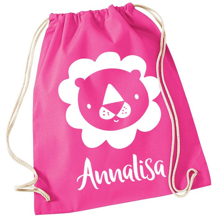 Semplice ma super utile sacca zainetto per la scuola personalizzata con il nome del bambino e la simpatica sagoma di un leone. Realizza lo zainetto perfetto per la scuola materna, l’asilo nido o per lo sport, il corso di musica, il catechismo del tuo bambino…