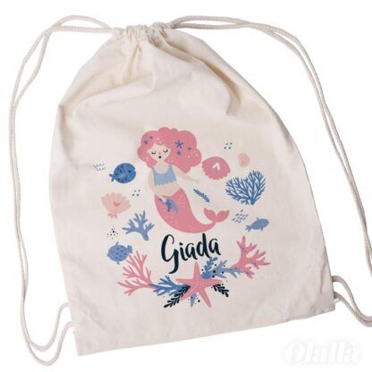 Borsa zainetto da scuola materna, adatta anche per le scarpine da ginnastica o altro materiale scolastico o sportivo. Cotone 100%. Tessuto spesso 140 gr.